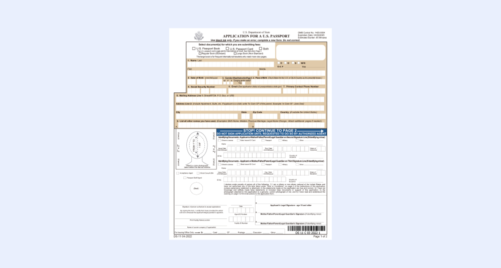 For first-time applicants, or if your previous passport was issued before you turned 16. We guide you through the official DS-11 form.